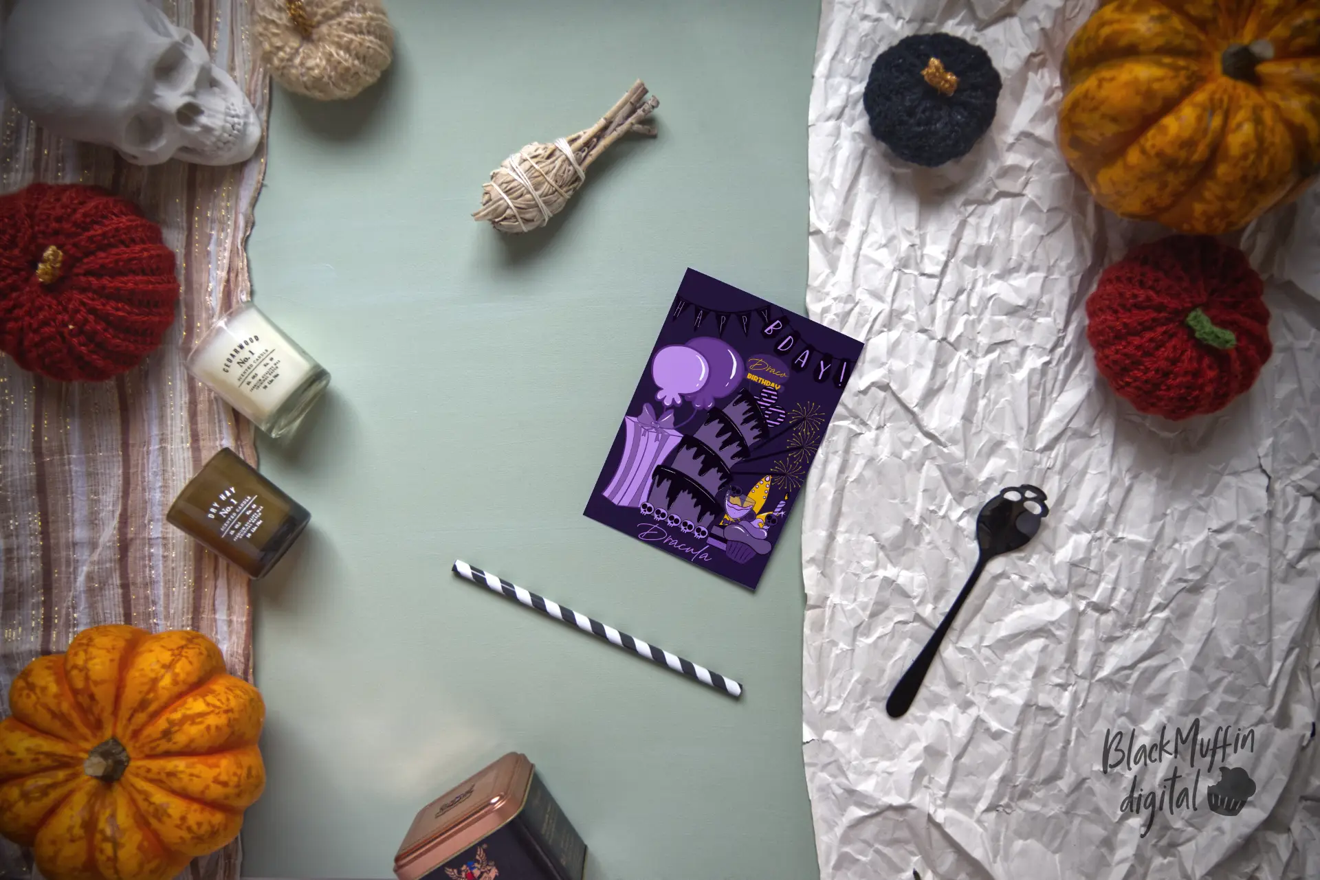 There’s a cake, candles, cupcake, cake topper, balloon, skull, number candles, glass, sparklers etc. You can create a ton of compositions with this brushset, just let your imagination go!